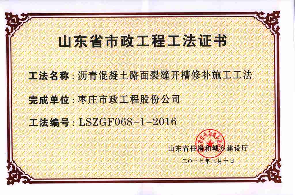 近日,從山東省住房和城鄉(xiāng)建設(shè)廳傳來喜訊,我公司申報的《瀝青混凝土路面裂縫開槽修補施工工法》和《人行道方形井座的施工工法》,經(jīng)山東省住房和城鄉(xiāng)建設(shè)廳工法評審委員會專家審核評審,順利獲批山東省省級工法。