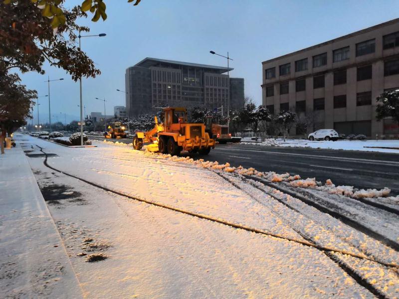 發現道路出現大面結冰積雪情況后,棗莊市政在31日凌晨4點鐘,緊急啟動破冰除雪預案。出動應急搶險機械——裝載機、平地機等多臺機械設備及十多名機務組人員,分別對黃河路、海河路、和諧路、民生路、光明路等多條路段道路進行除雪。截止31日交通早高峰到來前,城區內主要路段積雪已清除完畢,有效保障了市民順利出行。