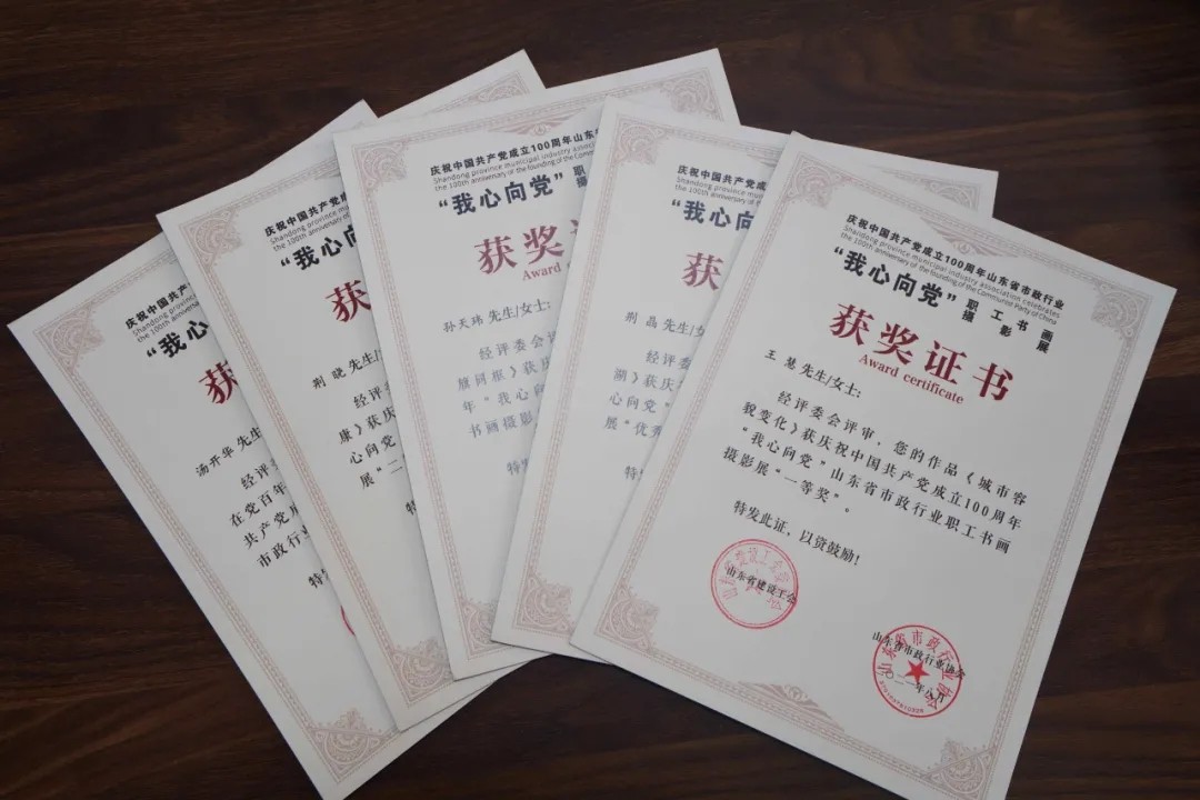 近日,從省市政協會獲悉,在 《我心向黨——山東省市政行業慶祝中國共產黨成立100周年職工書畫攝影展 》上,有四名集團公司員工報送的作品獲獎。其中,來自市政工程公司的王慧獲得攝影作品一等獎,來自人企部的孫天瑋、水利公司的馬寧和魯衡檢測公司的荊晶獲得攝影作品優秀獎。