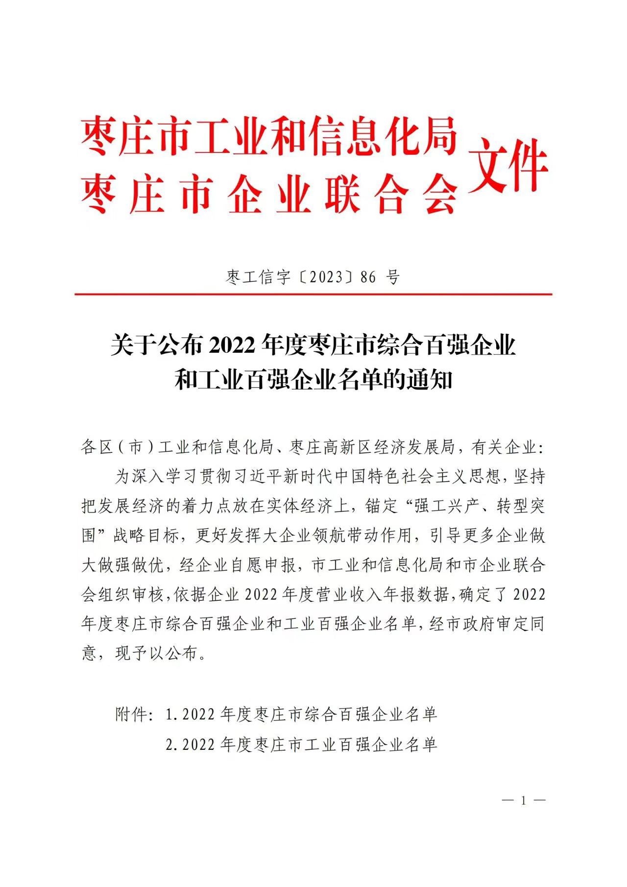 會議公布了“2022年度棗莊市綜合百強企業和工業百強企業”名單。棗莊市政建設集團獲評“棗莊市綜合百強企業”。