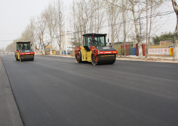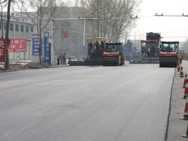 3月31日,在陽春二月和煦的陽光下,解放南路施工現(xiàn)場(chǎng)一片熱火朝天的景象。在施工圍擋區(qū),內(nèi)兩臺(tái)攤鋪機(jī)并駕齊驅(qū)、交錯(cuò)前進(jìn)。在攤鋪機(jī)身后兩臺(tái)雙鋼輪壓路機(jī)往來碾壓、有條不紊。下午,隨著解放南路(十里泉至嶧城界段)西側(cè)最后一板瀝青結(jié)構(gòu)層攤鋪碾壓工序的完成,解放南路道路維修工程全部結(jié)束,解放路道路維修工程階段性完成。