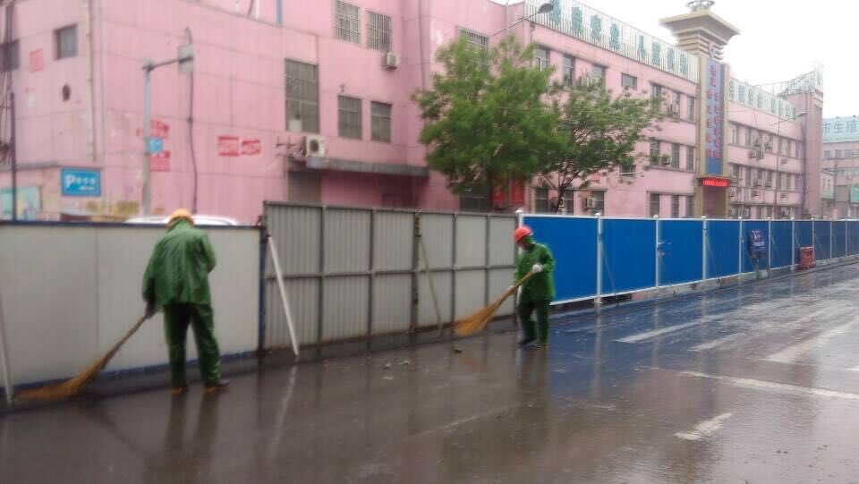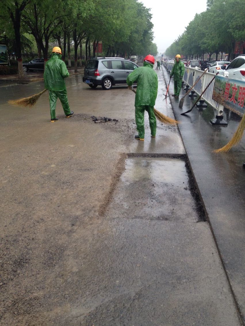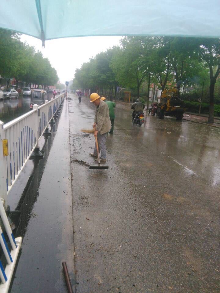 雨情就是命令,面對突如其來的降雨,工程項目部緊急啟動應急預案,組織開展不受降雨影響的舊路面結構層拆除和清掃工作。盡管雨不停地下著,卻澆不息現場施工人員保質量、搶進度的工作熱情。每個人都在認真負責地堅守著自己的崗位。就連施工隊伍工人也受到這種熱烈氣氛的鼓舞,不停地舞動著他們手中的工具,清掃著。車輛、行人也在項目部成員的指揮下,井然有序的通行著。額頭上的是雨水、還是汗水也分辨不清,但大家仍精神飽滿,不敢懈怠,都全力為早一天開放交通,為市民出行提供方便而緊張工作。