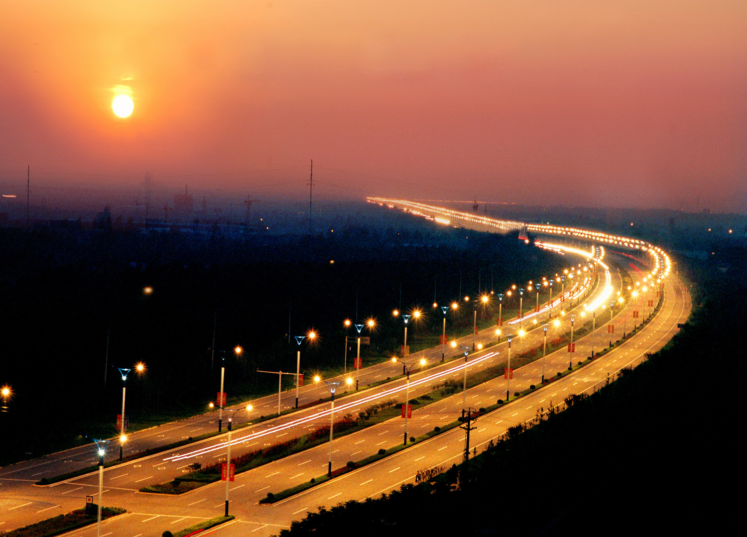 “遠遠的街燈明了,好像閃著無數的明星;天上的明星現了,好像點著無數的街燈”,光明大道路燈在夜晚就像一座金色的彩橋,照…
